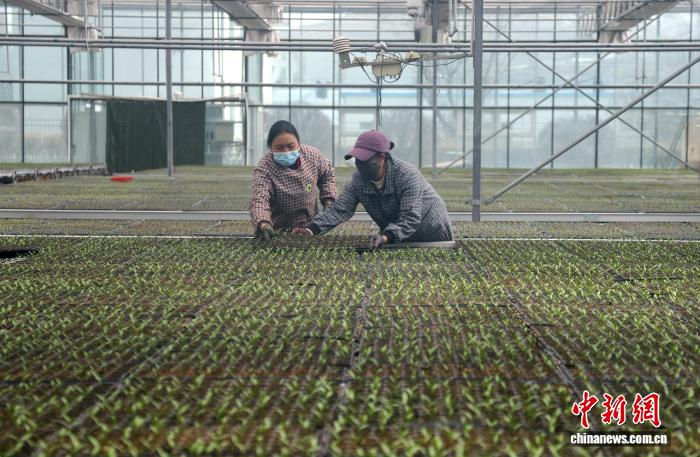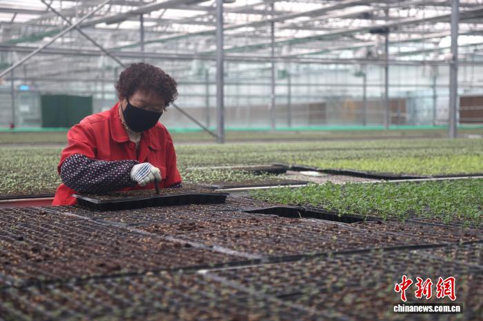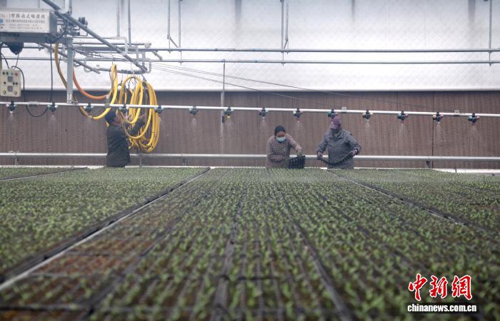 3月27日,青海省海东市合作县下本特性摩登农业树模园区,工人正正在管护热冷蔬菜禾苗。中新社记者 弛忠苹 摄