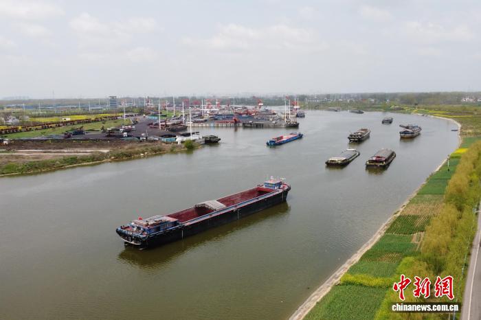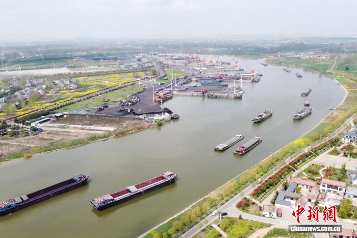 图为周心港重点港区范营功课区交易的货舟。(无人机相片)刘俏涛 摄
