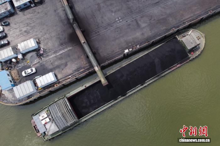 图为周心港焦点港区范营功课区舟只正正在拆运煤冰。(无人机像片)刘俏涛 摄